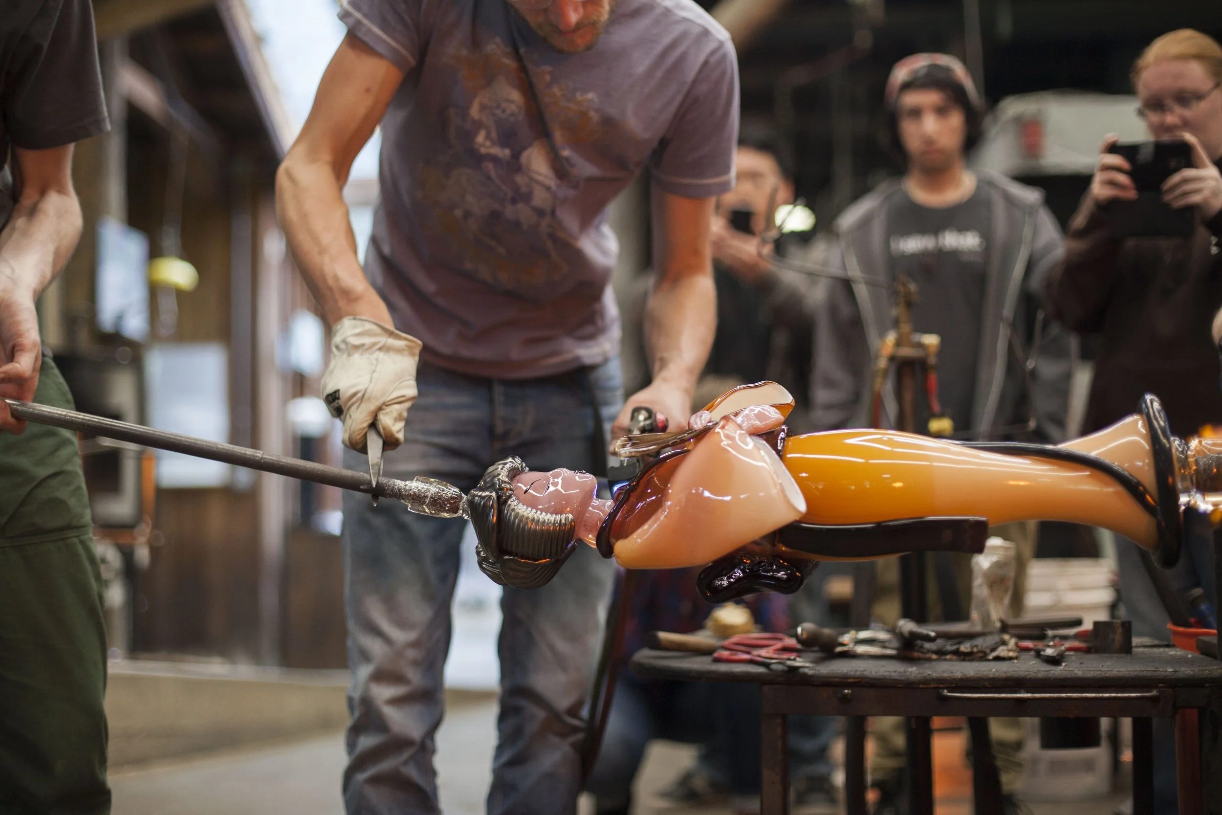 Making art from glass is time-consuming. It is an undertaking that can unfold over hours, but more often takes place over days, weeks, or even months. A great music playlist can be essential to keeping focused and staying creative. These playlists were the starting point for our exhibition Out of the Vault: Soundtracks. MOG Curator Katie Buckingham sat down with Ned Cantrell to learn more about his work in the exhibition and his creative process.