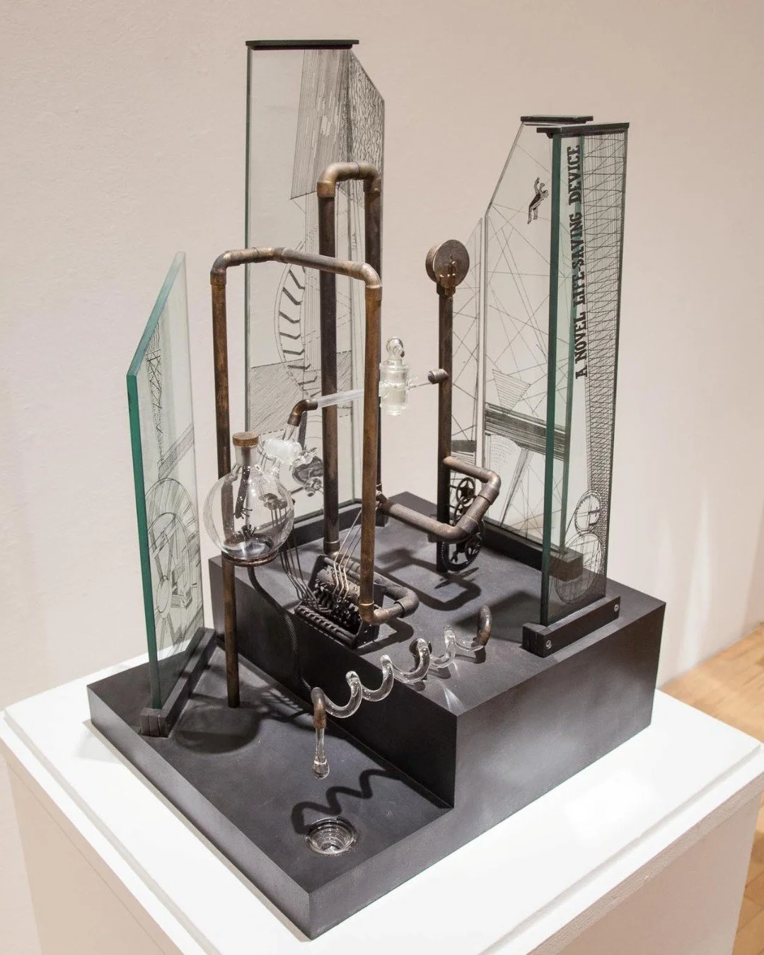 Laura de Santillana (Italian, 1955-2019). Blue/Black Partition, Made at the Museum in 2009. Blown glass; 19 5/8 × 14 1/2 × 3 1/2 in. Collection of Museum of Glass, gift of the artist. Photo by Duncan Price.