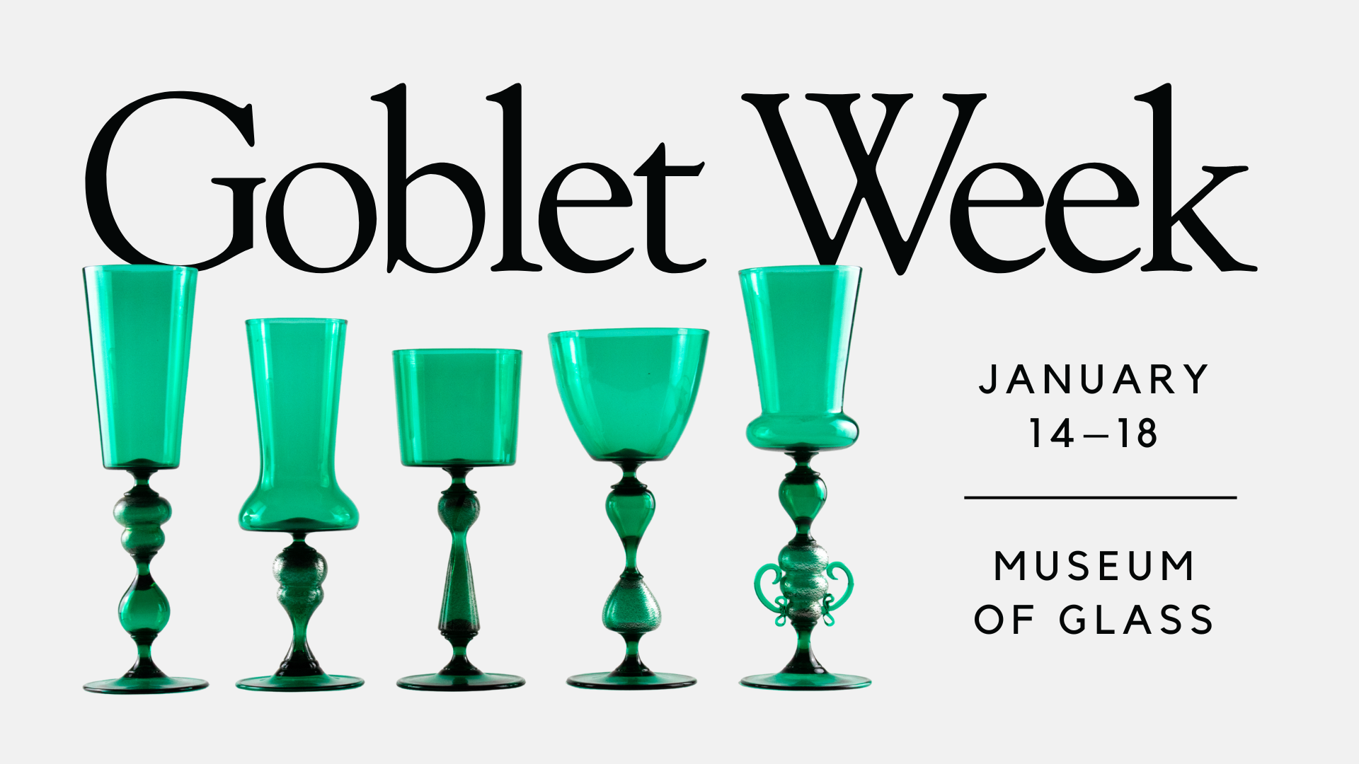 Additionally, Museum of Glass will host an Artist Reception + Wine Tasting and Goblet Sale the evening of Saturday, January 17. More details and tickets below.